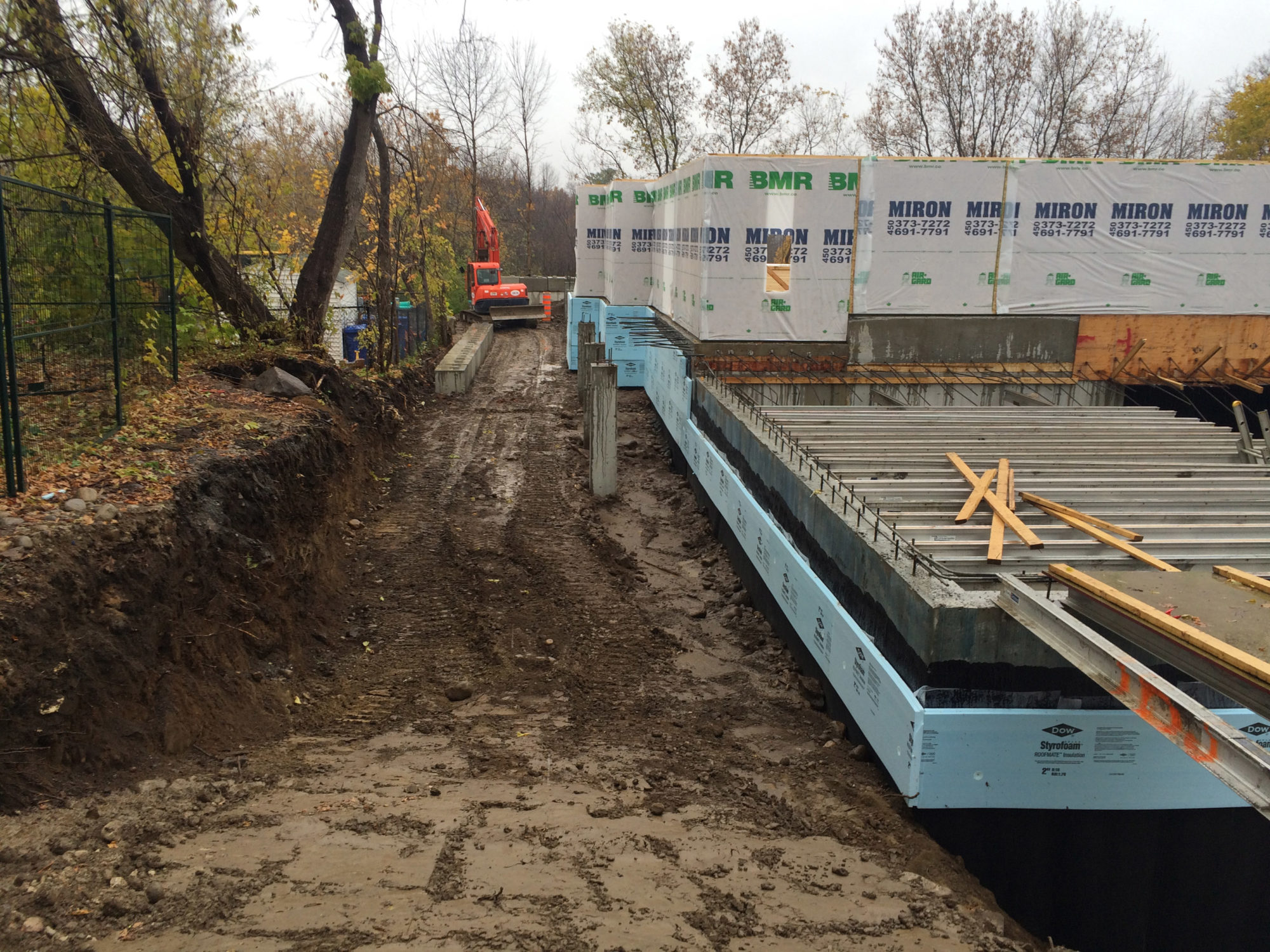 Construction of 12 high-end, corner-unit condominiums each with a large balcony. The building includes a number of custom features, modern design throughout as well as an elevator and underground parking.